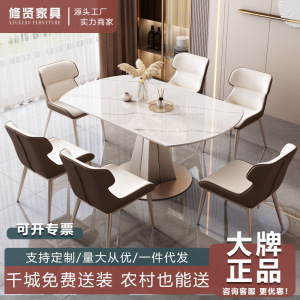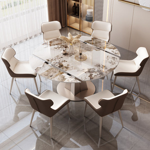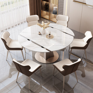 軽量高級スレートダイニングテーブルと椅子の組み合わせ、モダンでシンプルな家庭用小型回転伸縮式正方形と円形の両用ハイエンドダイニングテーブル