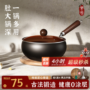 張丘大肚鍋 鉄鍋 公式旗艦店 家庭用炒め鍋 無塗装ノンスティック炒め鍋 5年保証 高級鉄製