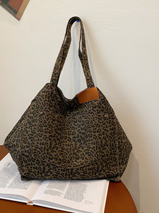 时尚复古豹纹单肩包女2025春季新款大容量简约百搭通勤腋下托特包