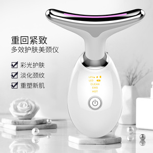 国境を越えた振動美顔器、顔と首の両用美容器、家庭用リフトアップ加熱ネックラインマッサージ器、ケア導入器