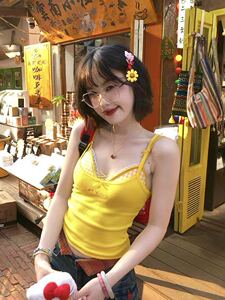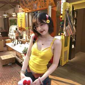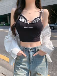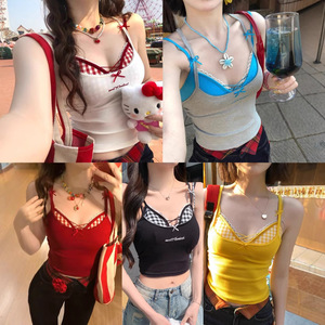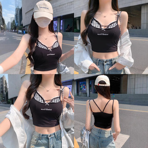 レースの美背キャミソール女性の夏の刺繍のアルファベットの外着の中に身を修める人の綿の偽の2つの美しい上着を着ます。