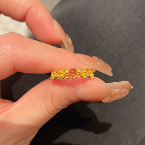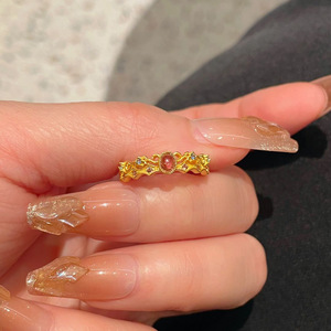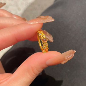 新しい中国風の古代黄金象嵌オープンリング女性のためのニッチ宮殿ファッションライト高級ハイエンドリング調節可能