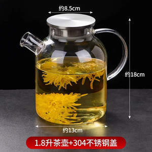 1.8L ステンレス蓋ティーポット [高ホウケイ酸増粘ガラス、直火燃焼]