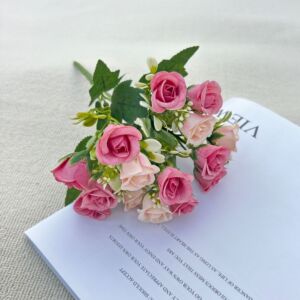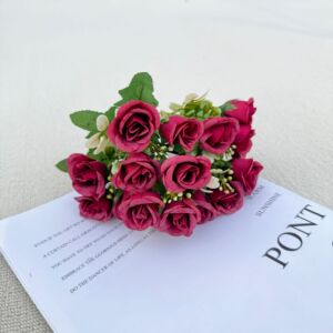 模造花ミニバラは花を手にして家にいる結婚式の室内客間の装飾に造花を飾っている