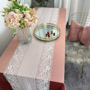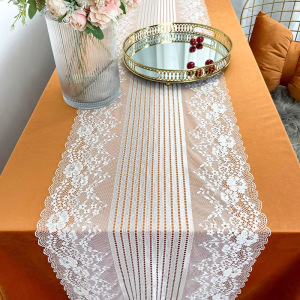 ドロップシッピング北欧白レーステーブルランナー中空ストライプカバーハイエンド雰囲気テーブルランナー在庫あり