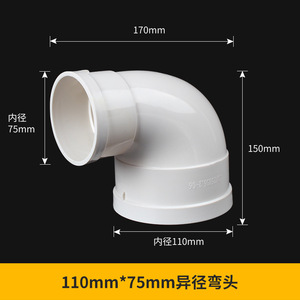 PVC排水変径エルボ異径エルボ110変75回転50 160度直角サイズパイプ形部品
