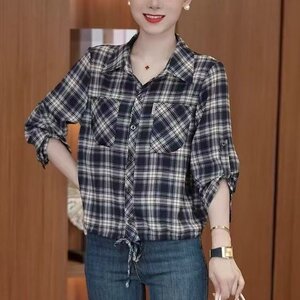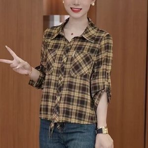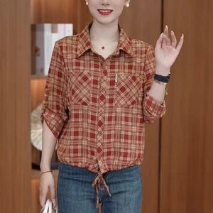 ドロップシッピングライブブロードキャストホットスタイル2025夏の新しいファッショナブルでクラシックなチェック柄の年齢を軽減するルーズシャツトップ