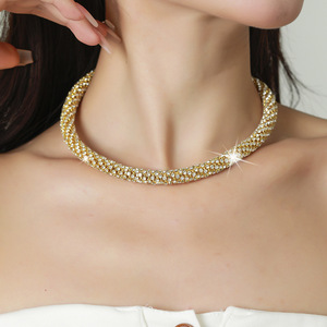大げさなダイヤモンドのネックレスの女性の百合首輪の個性のアクセサリの卸売りのメーカーのドリルは国境を越えて新型の爆発金を管理します。