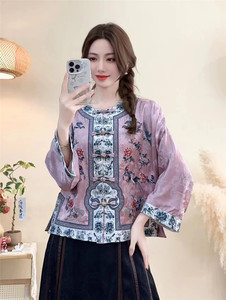 2025 春サテン生地ジャカード底無地女性カーディガン新中国風のボタン中国風の女性の裏地付きジャケット