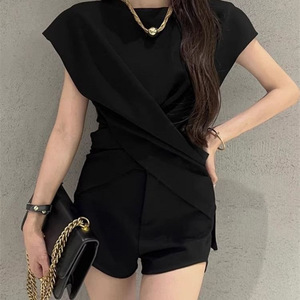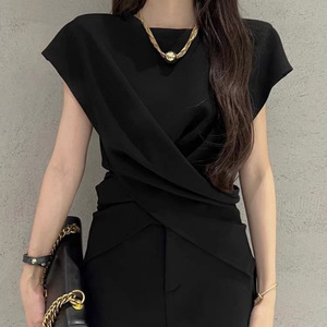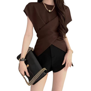女性のためのロイヤルシスタースタイルデザインクロス半袖シャツ2025新しい夏のスタイル軽くて成熟したスタイルのスリムフィットトップ