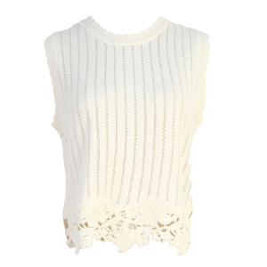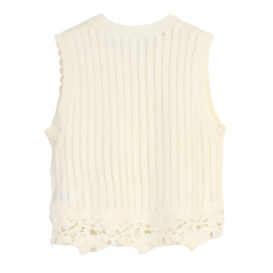 韓国版の女性用スリムフィットショートノースリーブプルオーバーボトリングシャツ春と夏の新しいスタイルのダメージエッジ中空ラウンドネックニットベストトップ