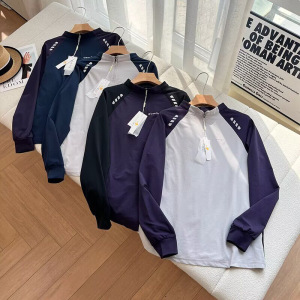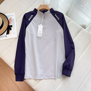 アメリカンレトロ!男性と女性のカップルスポーツ日焼け止め吸湿性フィットネスランニングハーフジップラグランスリーブ速乾性Tシャツ