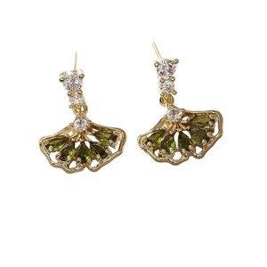 マイクロ象嵌ジルコン扇形イヤリング、ハイエンド、絶妙でコンパクトなイチョウの葉のイヤリング、軽い高級感、多用途のイヤリング卸売