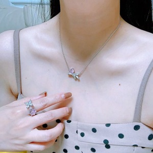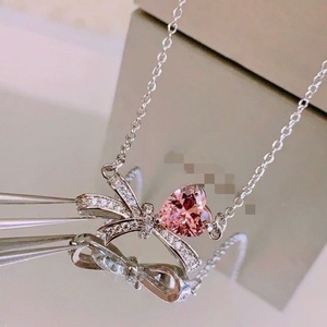 セイコー版ピンクダイヤモンドラブリボンネックレスフルダイヤモンド鎖骨チェーンネット有名人同じスタイルヨーロッパとアメリカのクロスボーダー専用メーカー