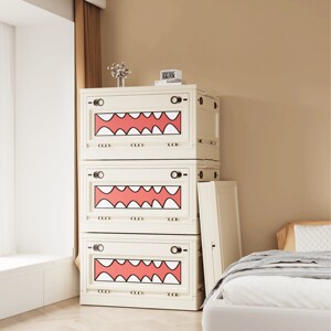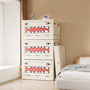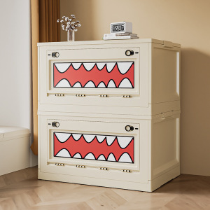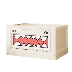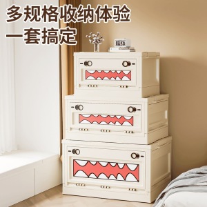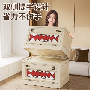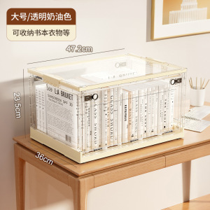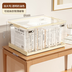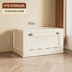 家用折叠收纳箱多功能奶油白大容量玩具整理箱塑料带轮折叠储物箱