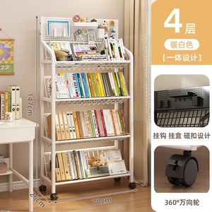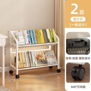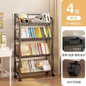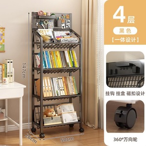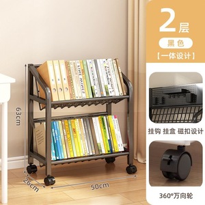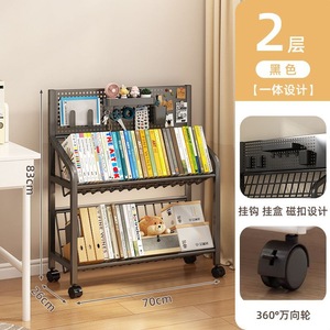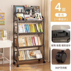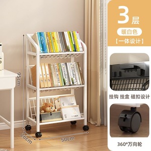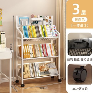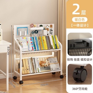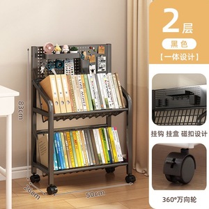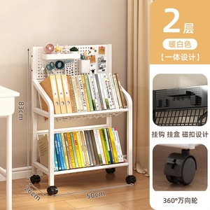 鉄製本棚、床置き収納棚、キャスター付き子供用小型本棚、多層カート収納棚、穴あきボード移動式本棚