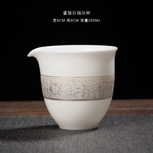 氷種羊脂翡翠百福銀メッキティーポット家庭用カンフーティーセットカバーボウルマスターカップハイエンドギフト