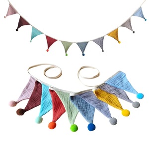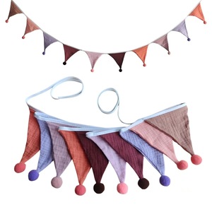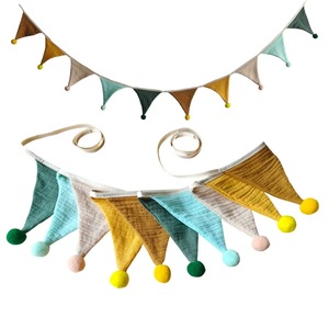 子供用二重綿クレープ毛玉純色三角旗誕生日パーティー旗幼稚園家庭キャンプ旗