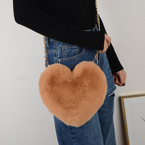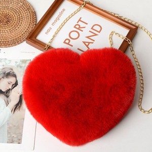 现货新款情人节爱心链条包毛绒心形包包女斜跨包桃心形爱心包包女