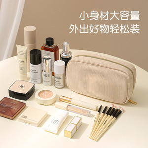 シンプルな大容量のコーデュロイ収納バッグ旅行化粧品収納袋携帯手持ち女子化粧バッグ