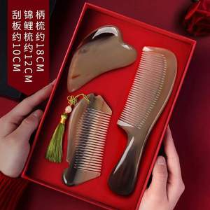 メーカー直販天然牛角櫛男女通用マッサージ旧正月礼箱セット天然牛角櫛