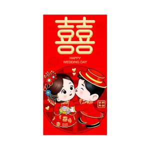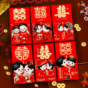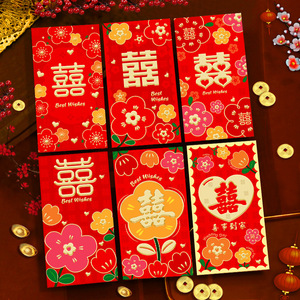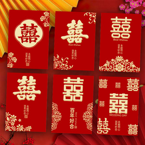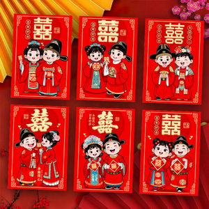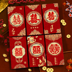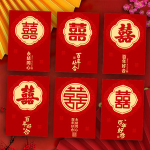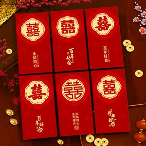結婚の赤いバッグを厚くして新婚の喜字利はアイデアを封じて百元千元通用の双喜紅包袋卸売りである