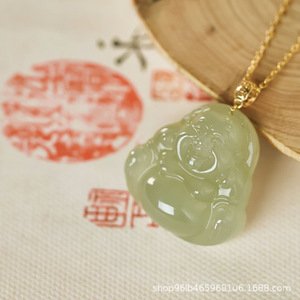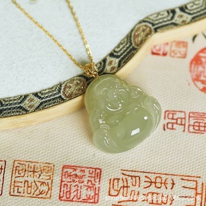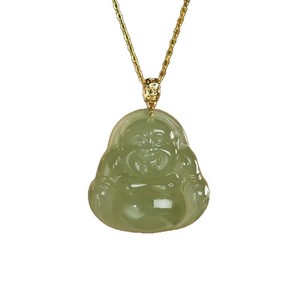 天然ホータン翡翠 18K ゴールドネックレス弥勒仏仏ペンダント翡翠翡翠仏ペンダント女性笑い仏翡翠ペンダント