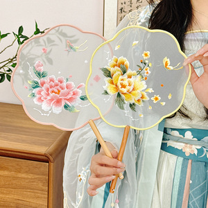 高颜値中国風蘇刺繍女漢服チャイナドレス古着専用舞踏扇両面刺繍団扇古風扇子