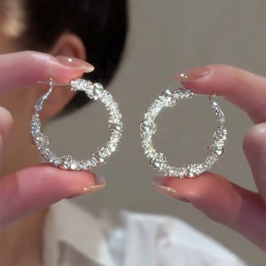时尚简约满天星圆圈耳圈轻奢高级感银针耳环女气质百搭网红耳饰品