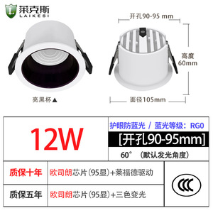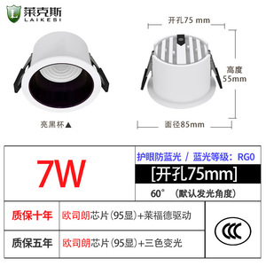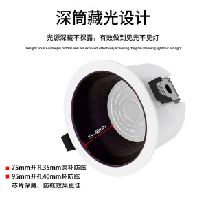 LED メインライトなし照明ダウンライト埋め込み型ディープアンチグレアリビングルーム通路ホームフルスペクトル高光効率 98 表示