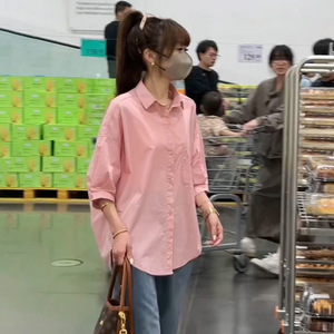 休闲宽松七分袖衬衫女士上衣春夏季新款时尚洋气小衫百搭中袖衬衣