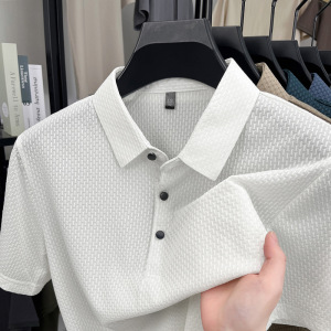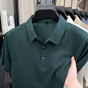 夏季男士短袖T恤翻领宽松休闲半袖新款男式polo衫爸爸装纯色上衣