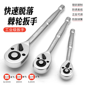 ポリッシュクロームメッキ 24歯手動クイックレンチ シャックルハンドル 双方向ラチェット ラージフライクイックリリース クイックラチェット