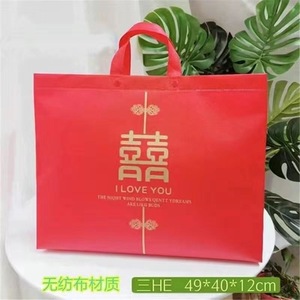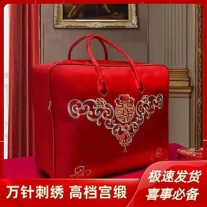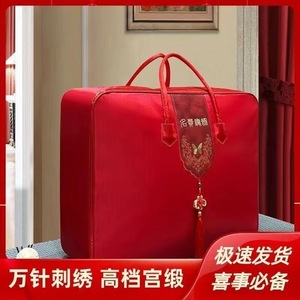 結婚式の持参金収納袋、結婚式の4点セット、赤いウェディングキルト、キルト包装袋、サテンオックスフォードハンドバッグ