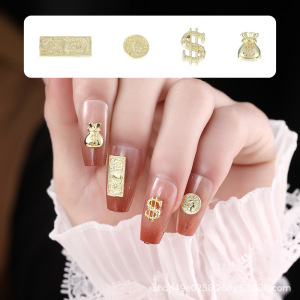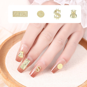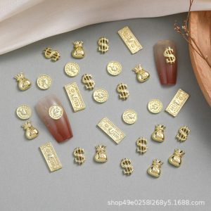 ネットで話題の新年用お金袋、銅貨ネイルアートアクセサリー、金属合金元宝、財神、ドルネイルデコレーションアクセサリー