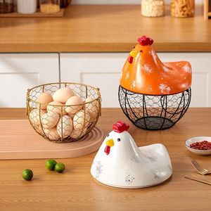 ネット赤陶磁器の卵かごの果物かごの雑物かごのニンニクのジャガイモの収納鉄のかごの台所のアイデアは振尾栄を収めます。