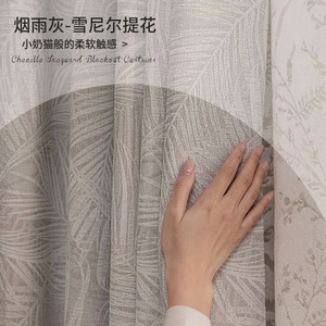 ジャカードシェニールカーテン高遮光クリーム風フレンチリビング寝室高級感軽豪華紹興柯橋カーテン
