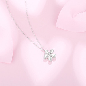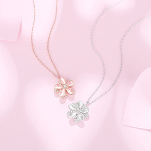 回転可能な桜ピンクペンダントネックレスガールズライト高級ニッチデザインハイエンド鎖骨チェーン誕生日ギフト