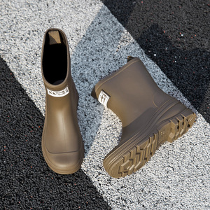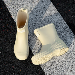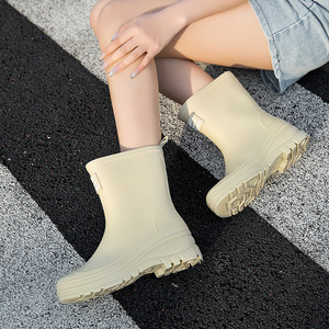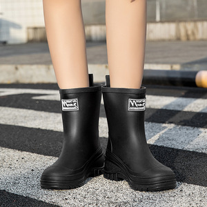 雨靴女性ファッションベルベット保温中筒水靴秋冬成人雨靴防水滑り止め水靴キッチンゴム靴