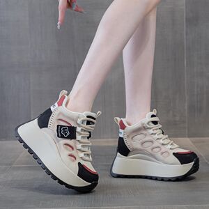 インナー身長アップレディースシューズ、ハイトップカジュアルスポーツシューズ、2025年春新作、人気の万能厚底ダッドシューズ、ライトラグジュアリー