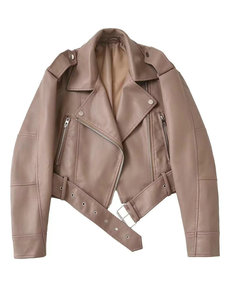25春と秋の新型女装ファッションの短い襟がゆるいpu模造ジャケット機関車アメリカ高級感