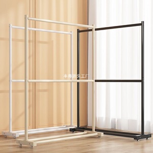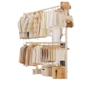 二層プラスホイール衣類ディスプレイラック床置き垂直家庭用衣類ラック寮の寝室のコートラック収納ラック