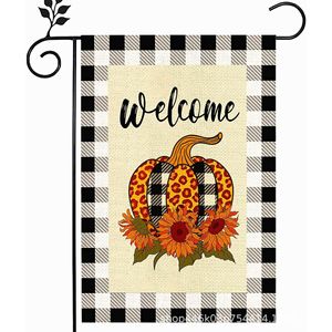 Amazon ホットセール秋のガーデンフラッグカボチャプリントリネン両面秋の庭の装飾旗フラグカスタム