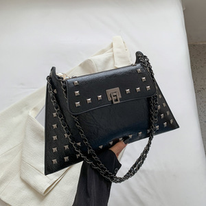 跨境热卖复古腋下包包女小众时尚单肩斜挎女包包链条铆钉包腋下包