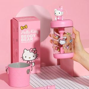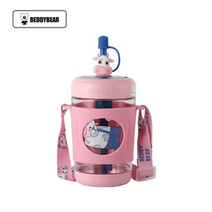 カップクマ子供用水出しストローカップ学生夏の漫画ポータブルケトルミキシングベビードリンクカップ学校用