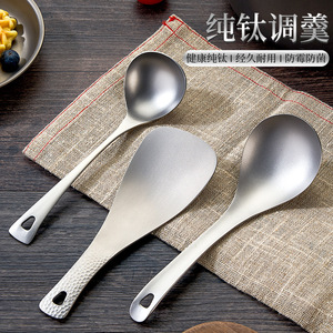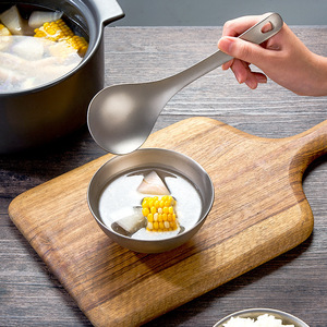 純チタンスプーン、家庭用鍋スプーン、ザル、スープ、スープ、大型チタン合金スプーン、アウトドアキャンプ用長柄スプーン