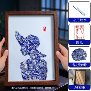 青と白の磁器手作り diy フォトフレーム装飾絵画景徳鎮セラミックコラージュプリント愛国テーマ中秋節チームビルディング