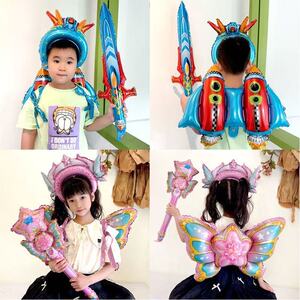 新しい蝶の羽夏子供の装飾ヘッドバンドヘアバンドバルーンバララ魔法の杖ナイトマーケットの屋台ホットセール