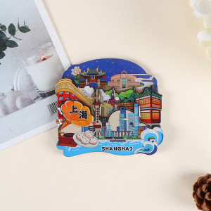 木製冷蔵庫マグネット カスタムメイド クリエイティブ マグネット式 文化的・創造的なDIY 上海観光名所 エポキシ樹脂製お土産グッズ