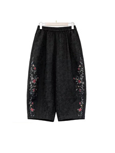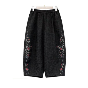 Qianchunwuxi オリジナル 2025 春の新作中国風ファッション刺繍クロップドパンツ黒ワイドレッグパンツ
